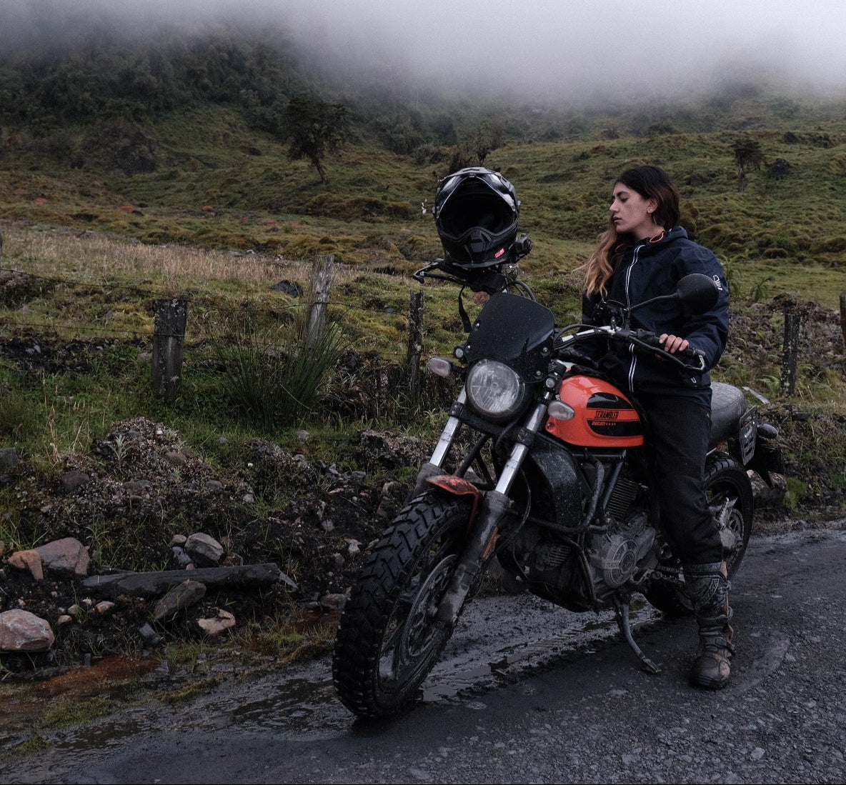 Pero también soy amante de los detalles simples de la vida, de esas pequeñas cosas que se vuelven mágicas cuando sales a rodar. Un tinto en la tienda del camino, la lluvia inevitable, los amigos que te acompañan, las maletas que se ajustan para llevar lo necesario, los paisajes que sabes que vas a encontrar pero igual logran sorprenderte, los perritos del camino que sin esperarlo se hacen tus amigos y te alegran el alma. El frío en las manos, el calor del cuerpo, las lágrimas dentro del casco, cantar a gritos, bailar sola mientras manejo. Todo eso me emociona, todo eso me recuerda que estoy viva. Si lo encapsulará en una palabra, sería libertad, libertad de sentir miedo, felicidad, adrenalina, nostalgia.